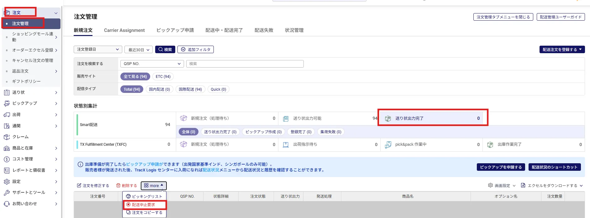 [注文] > [注文管理] > 該当注文を選択 > [配送中止要求]