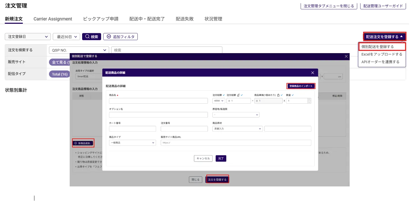 ② 注文情報を入力する(出庫タイプ選択:Smart配送)
