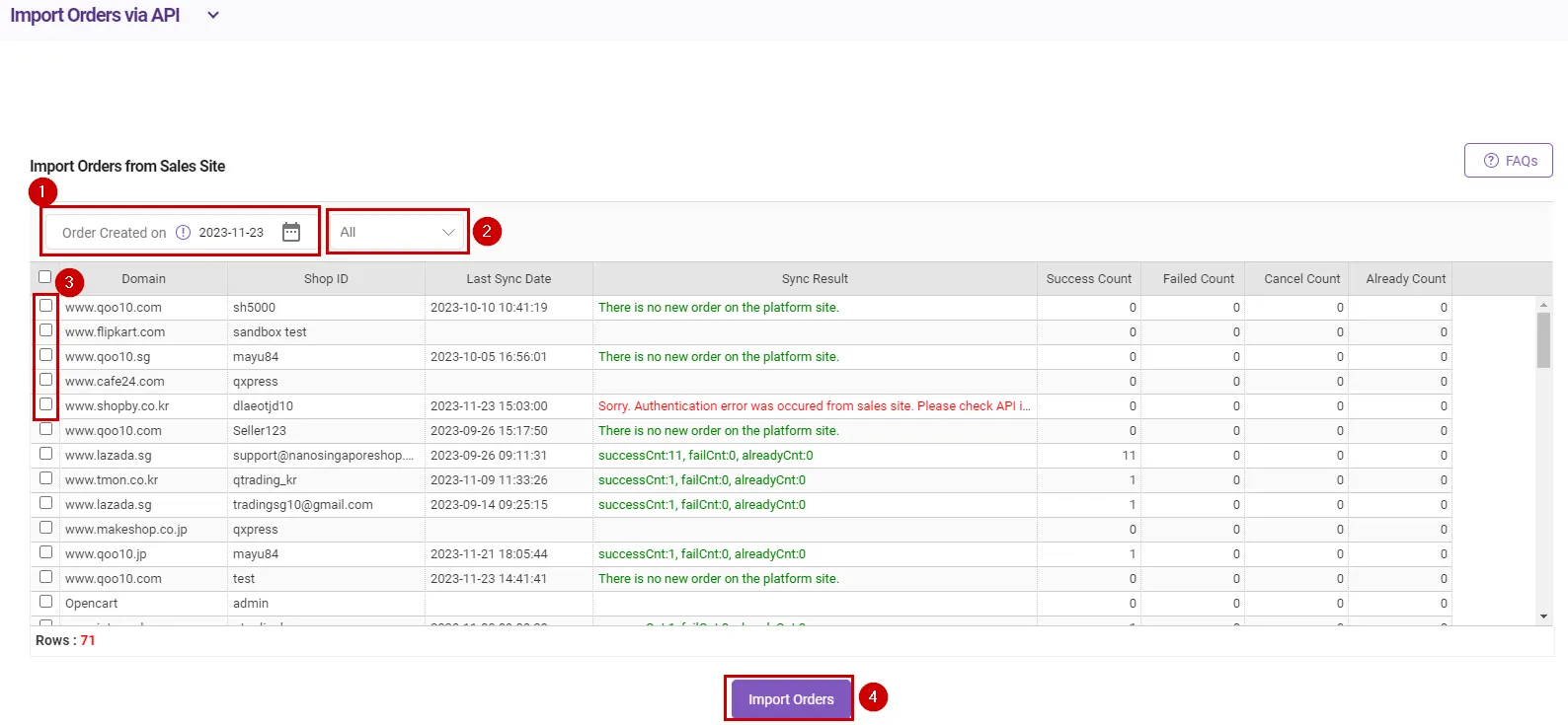 Path : Sales Site API > Import Orders via API