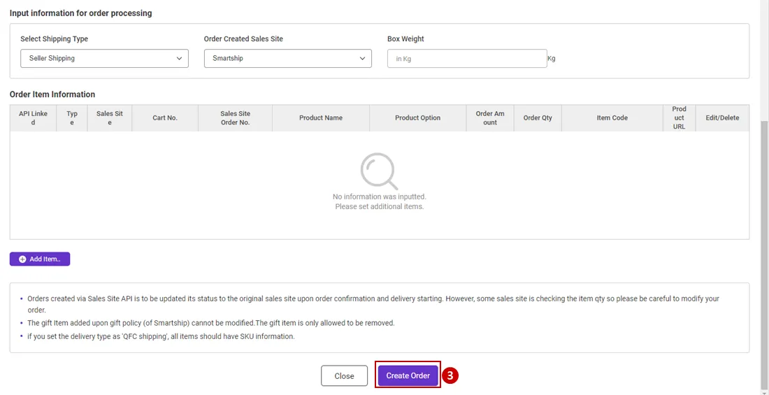 3-2. How to register a manual order (Create order)