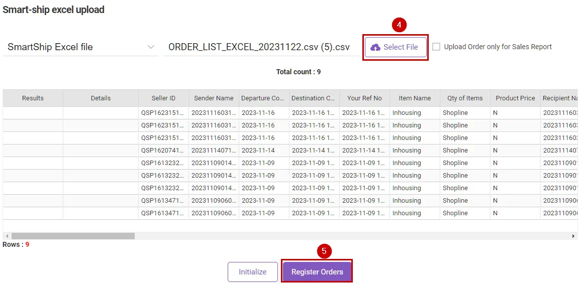 4-5. How to register manual order (Excel registration)