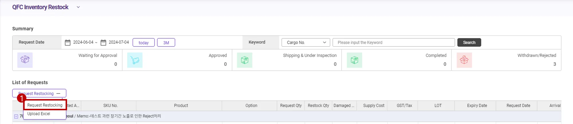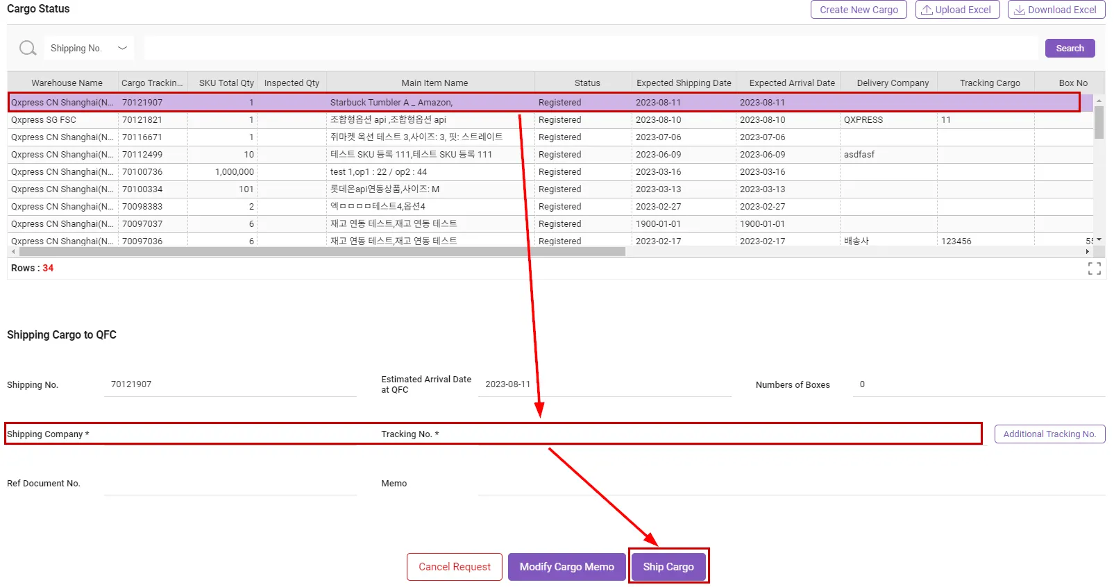 Approved : If the warehouse manager confirms the warehousing application details and approves it, the value is changed to āApprovedā status. At this time, please prepare to ship the cargo to TFC.
