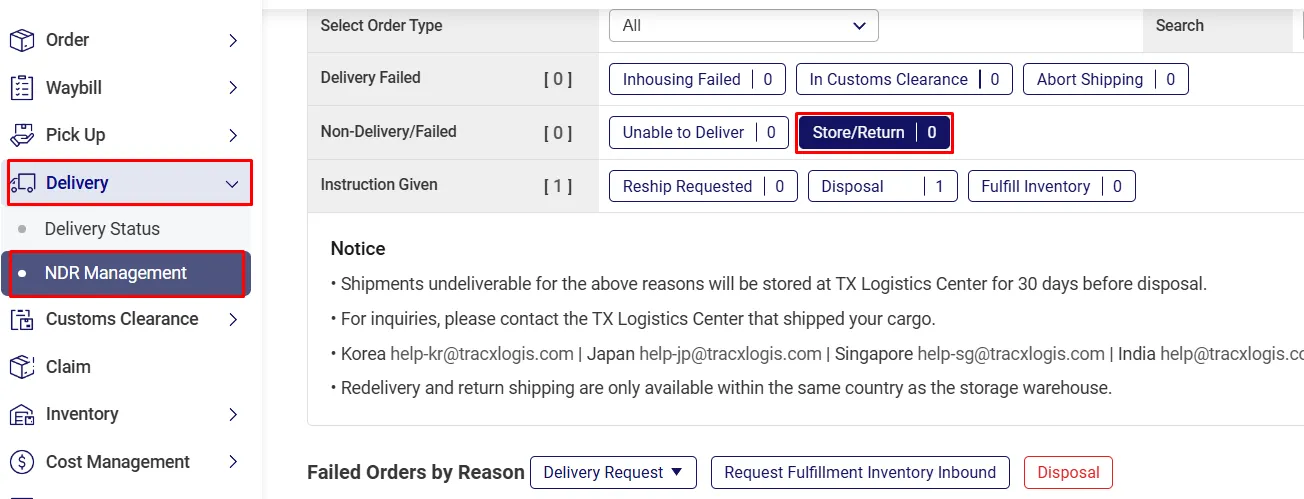 1. Delivery Failure β Warehouse Storage/Return [How to Check Orders]