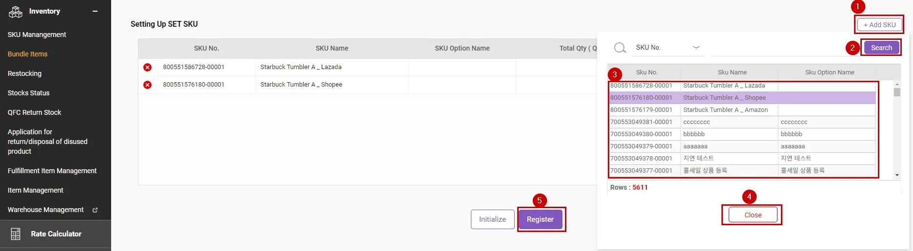After checking the SKU to be bundled as SET SKU, click the [Register] button.