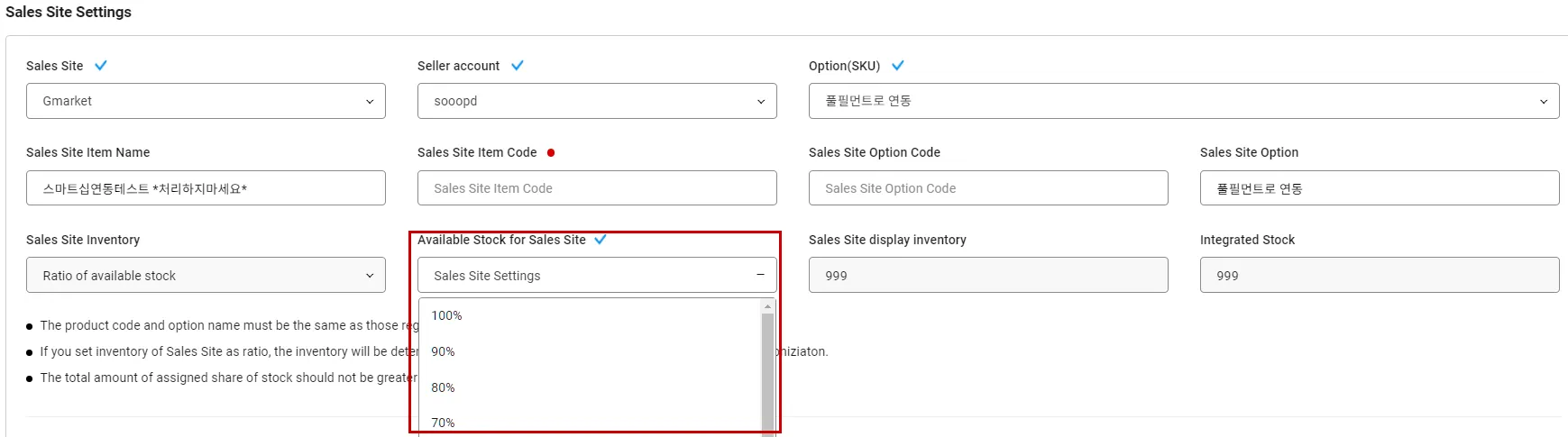 This function displays only a portion (e.g., 80%, 50%) of the actual available inventory as product inventory on the sales site. This is an auxiliary function that minimizes the occurrence of overselling when products of the same SKU are sold simultaneously in multiple sales channels.