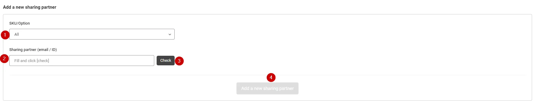 Click the [Add a new sharing partner] button to share the selected SKU to that partner.