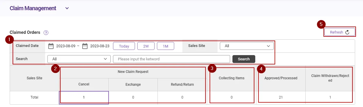 If click [Refresh] button, we will collect all the claim requests from the sales site you’ve set.