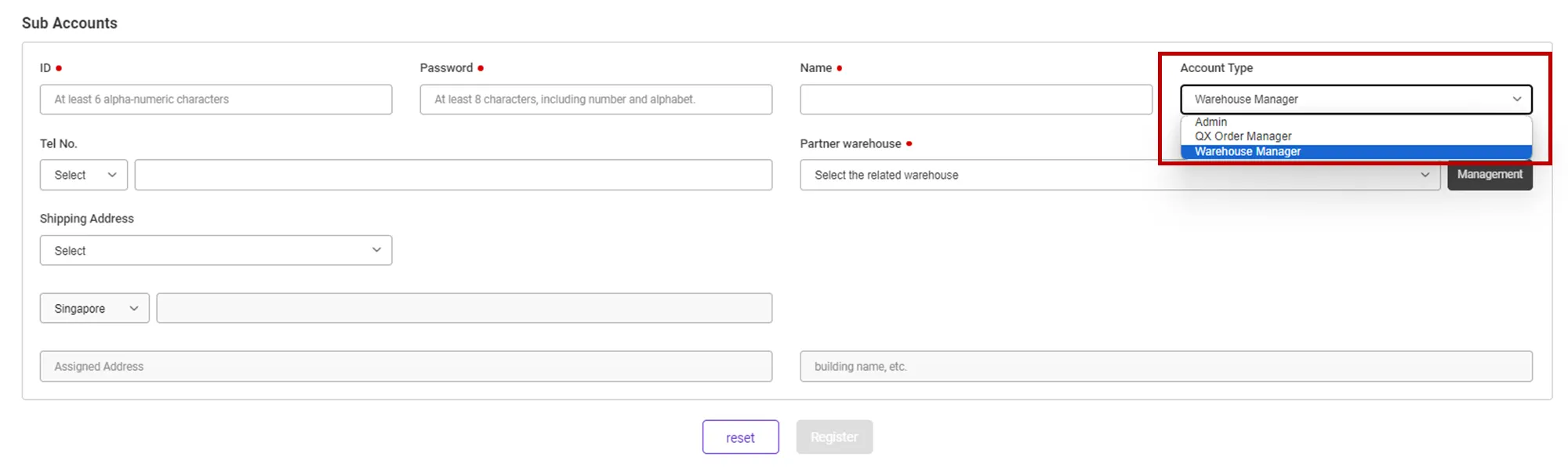 In SmartShip, you can register and use sub-accounts. By using a sub-account, you can utilize SmartShip (with some feature restrictions) without sharing the main account password with your team members.