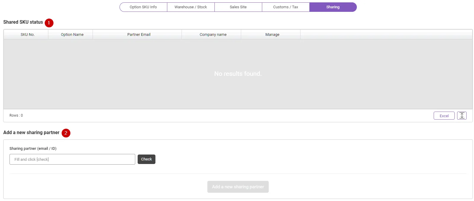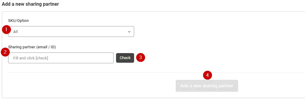 Click the [Add a new sharing partner] button to share the selected SKU with the relevant partner.