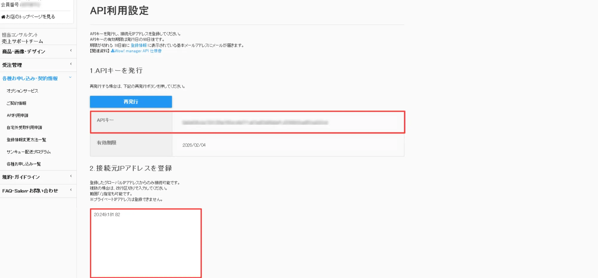 API Key는 90일간 유효합니다. Key가 만료되면 Wowma! Admin에서 갱신 후 API Key설정을 수정해야 합니다.