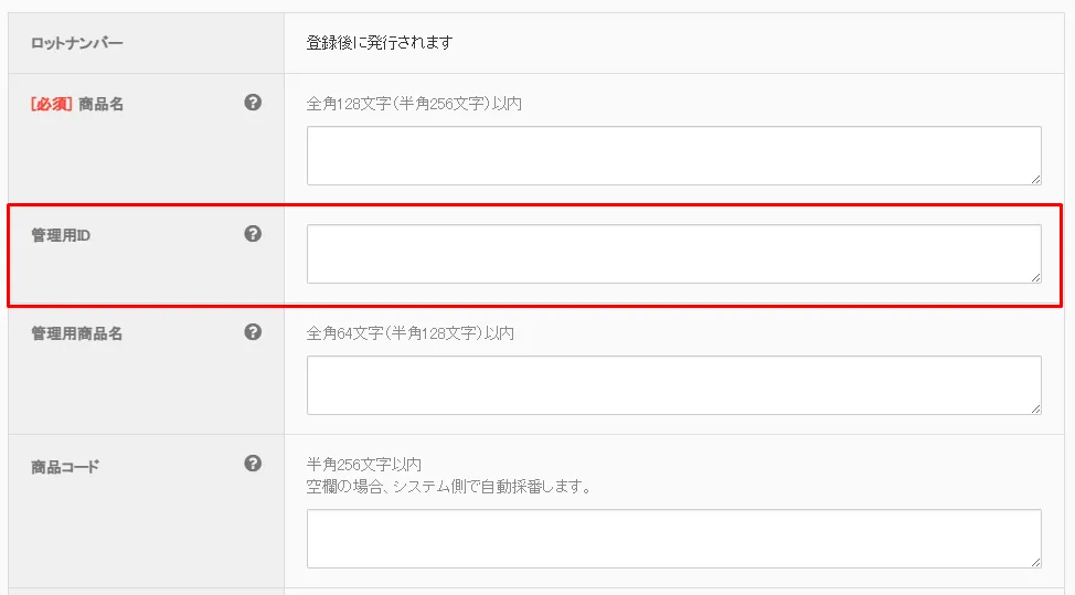 옵션이 없는 단일 상품일 경우는 “管理用ID”를 입력합니다.