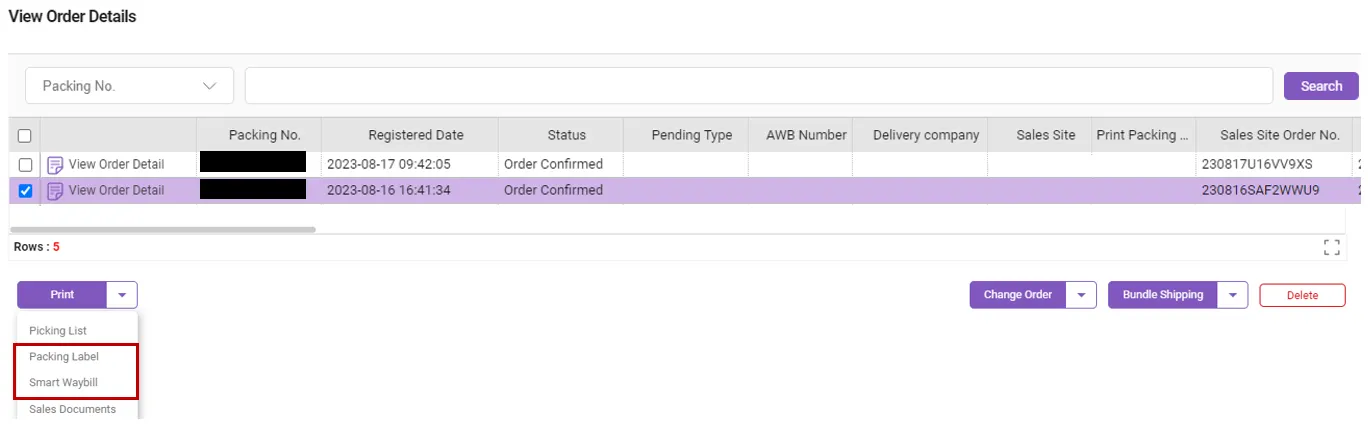If you want to print a packing label or invoice, you can go to the following path to print it out.