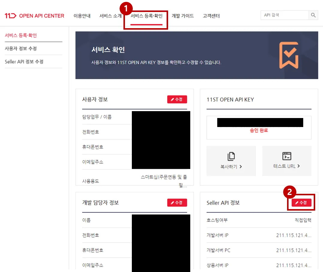 Log int to the 11th open API center and enter the “Register/Confirm Service” menu.
