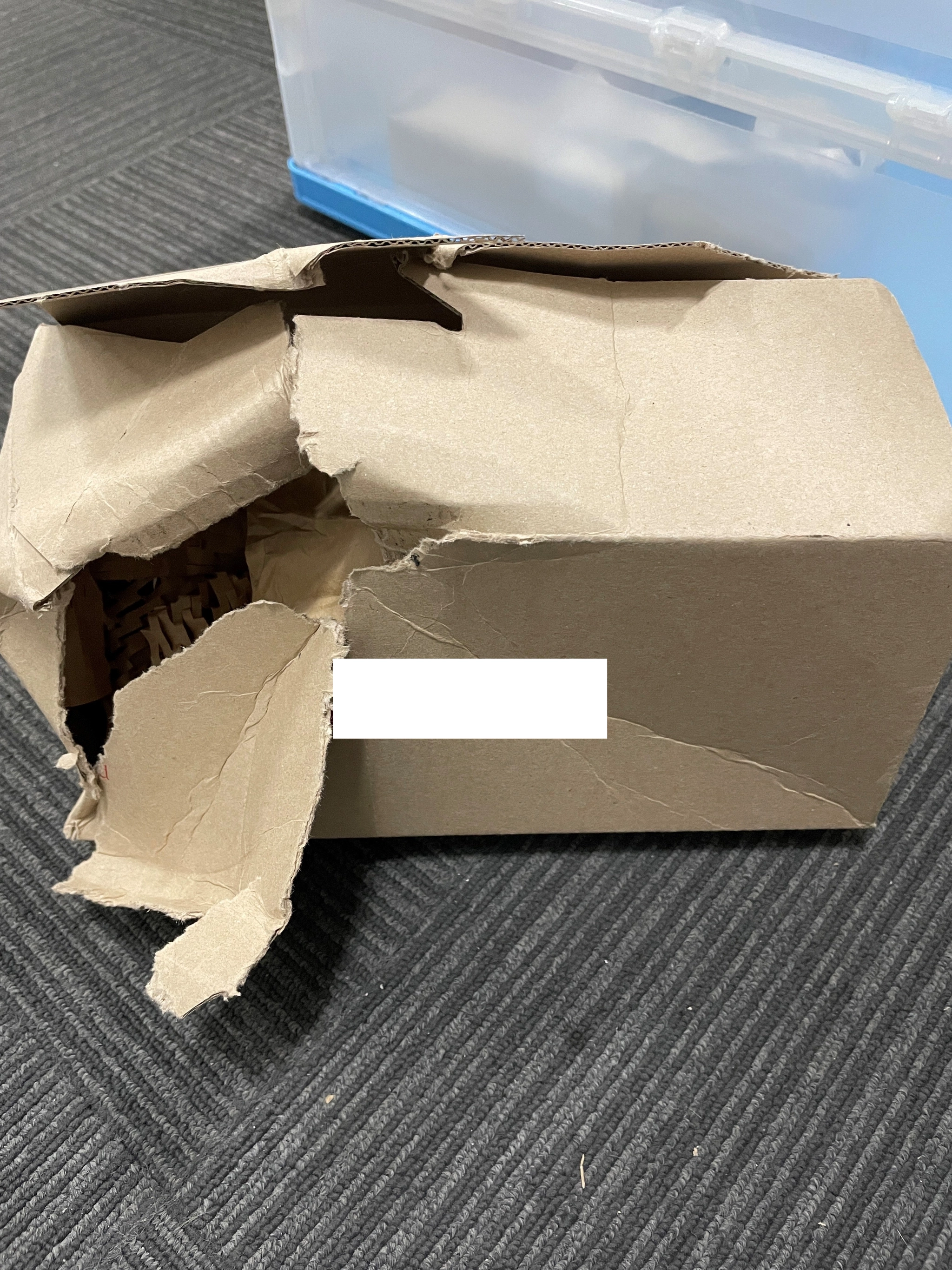 예시 1 : 테이핑 없이 발송 된 조립식 박스