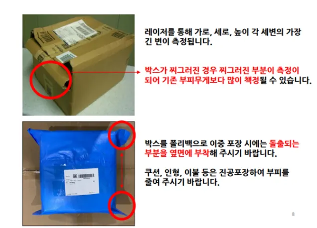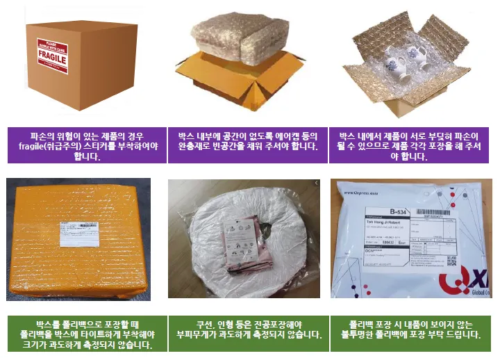 올바른 포장 방법을 참고하셔서 포장 해주세요