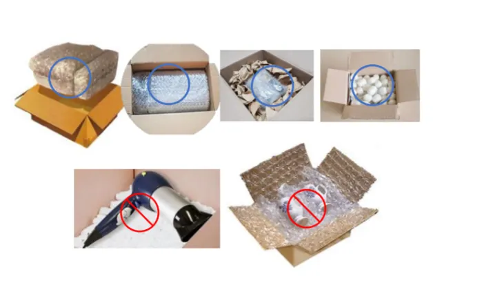 박스 내부에 빈 공간이 없도록 에어캡 등의 완충재로 채워 주세요.