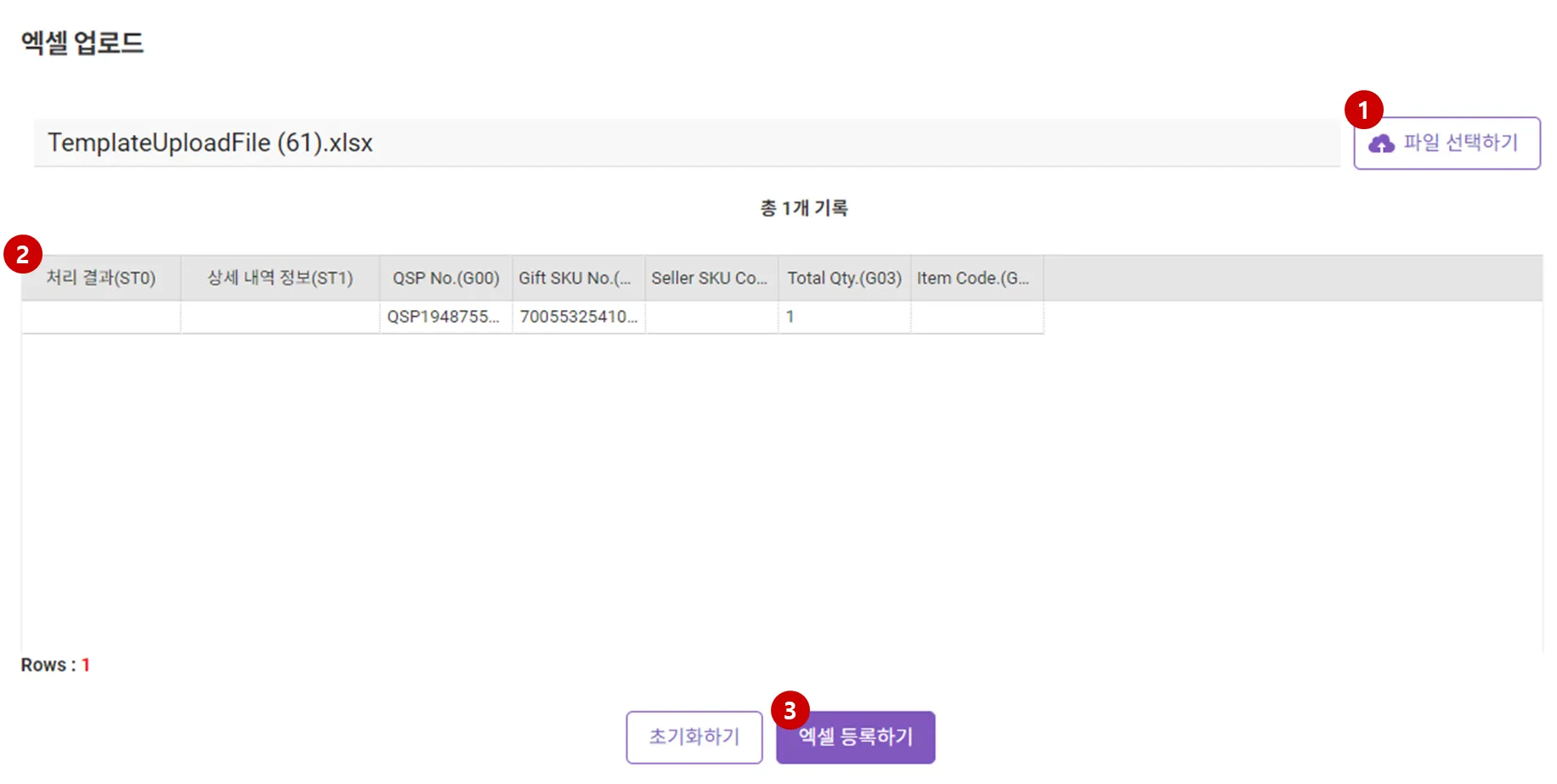 [엑셀 등록하기] 버튼을 클릭하면 해당 내용으로 사은품이 부여됩니다.