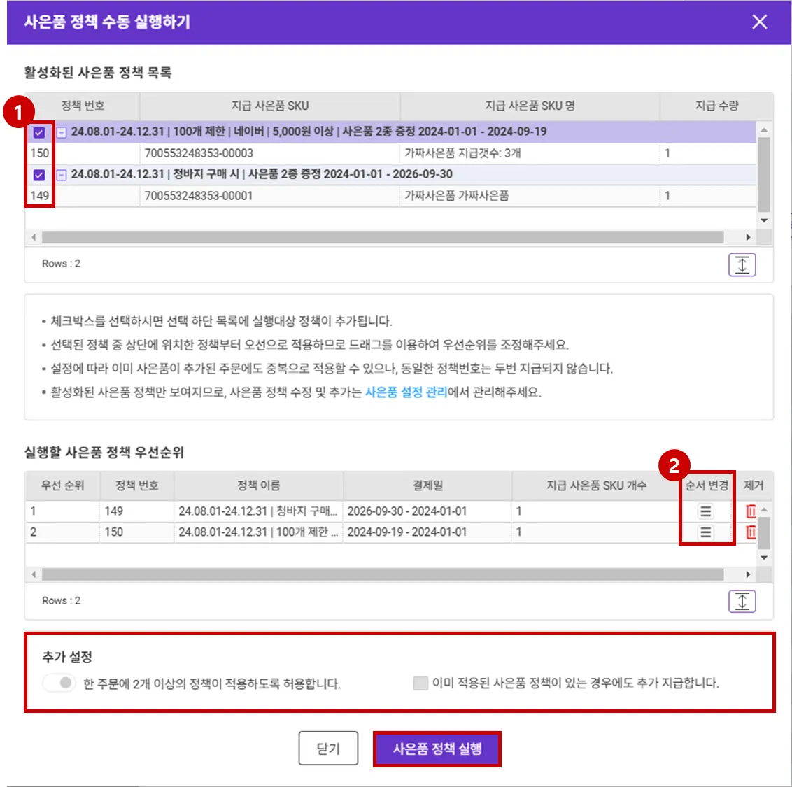 2. 사은품 정책 수동 적용