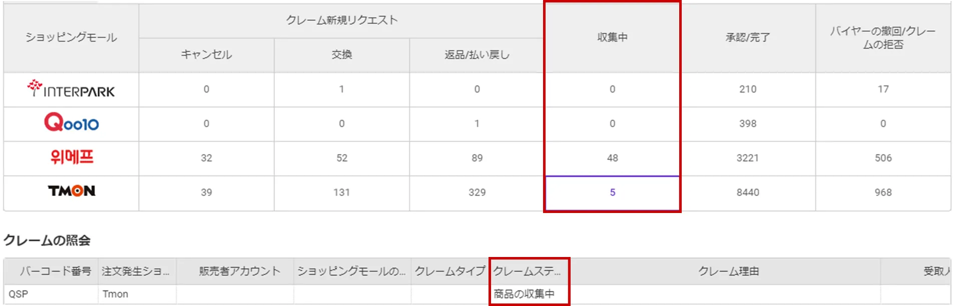 購入者が直接宅配会社を通じて返品を受け付けたクレームの場合も、最初の収集時に「回収中」に分類されます。