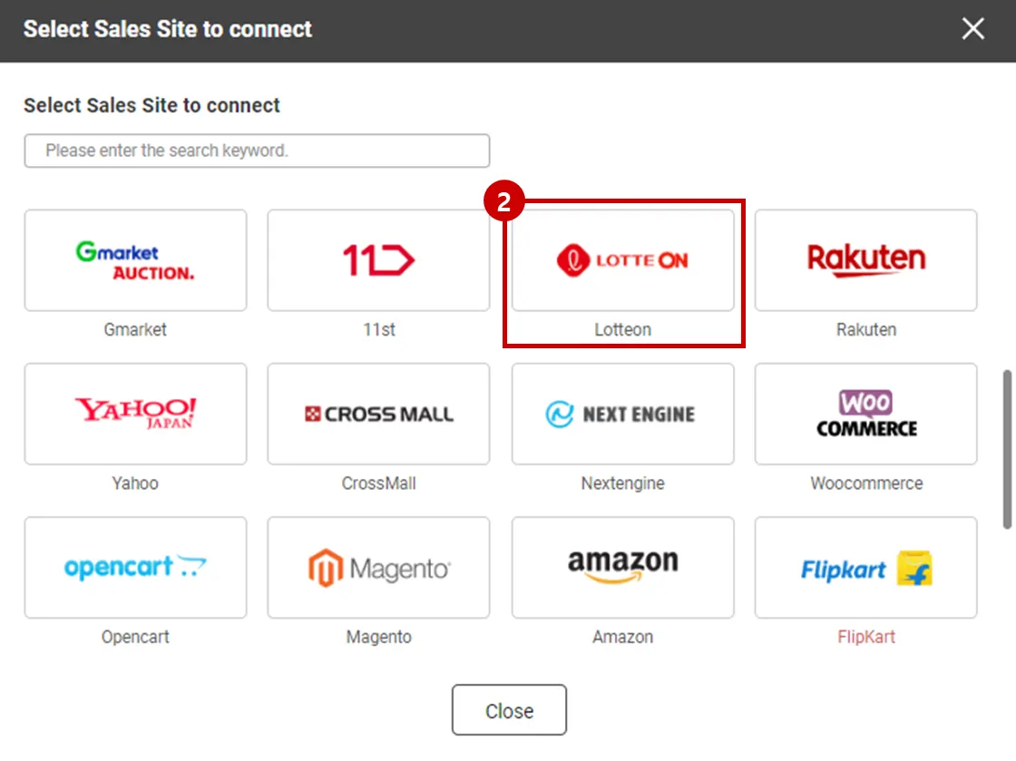 Select “LotteON" Logo and please scroll to the "Sales Site Linkage Registration".