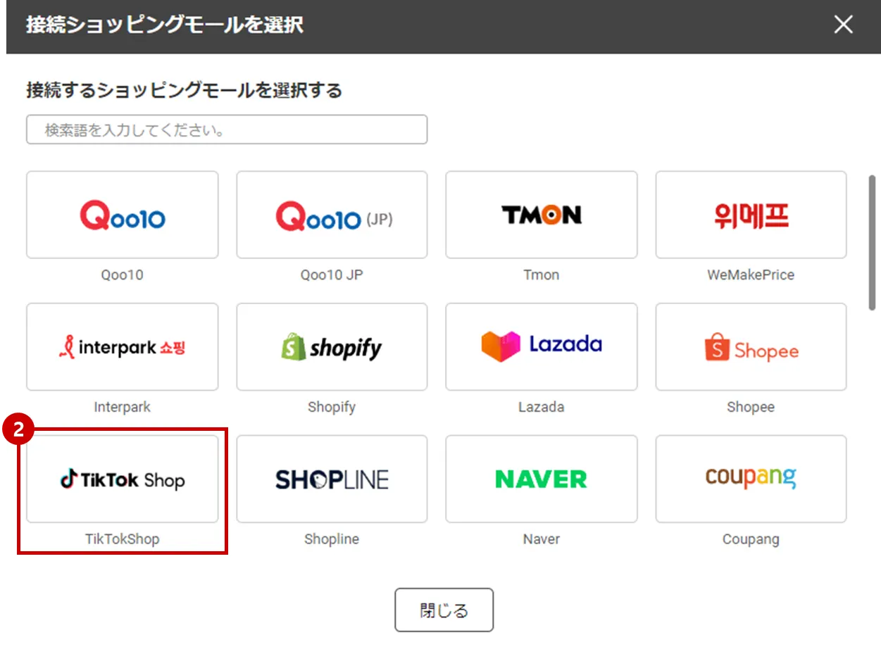 “TikTokShop”を選択した後、下段の"ショッピングモール連動登録"へスクロールを移動してください。