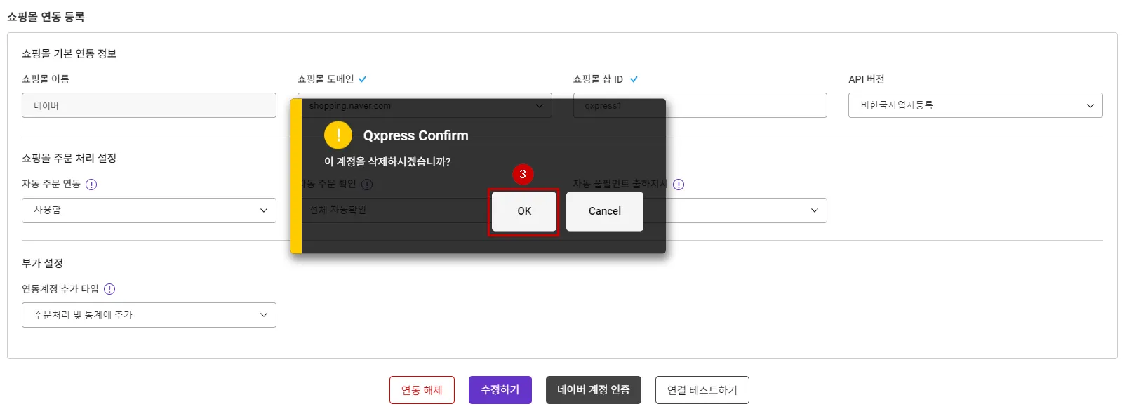 [OK] 버튼을 누르면 API 해제가 완료됩니다.