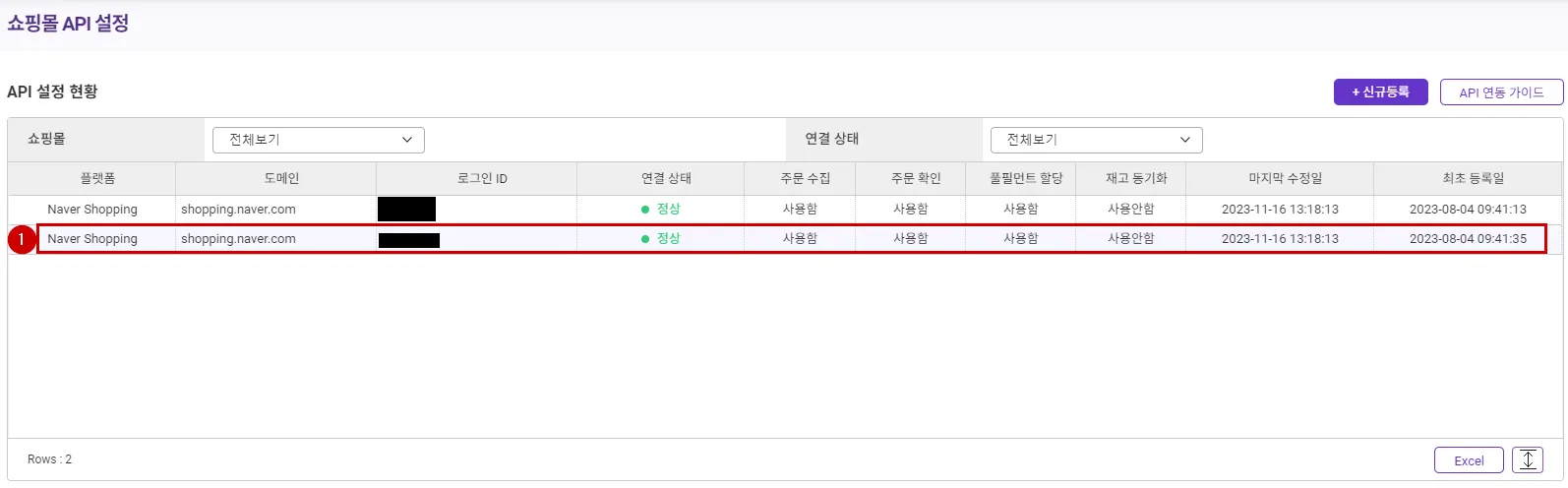 경로 : 주문 > 쇼핑몰 연동 > 쇼핑몰 API 설정