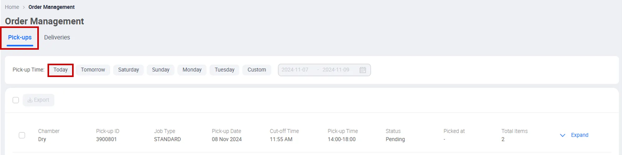 Smartship pulls orders with “Pick-ups > Today” (To Ship Sub-Status Value) status, among sales orders from RedMart.