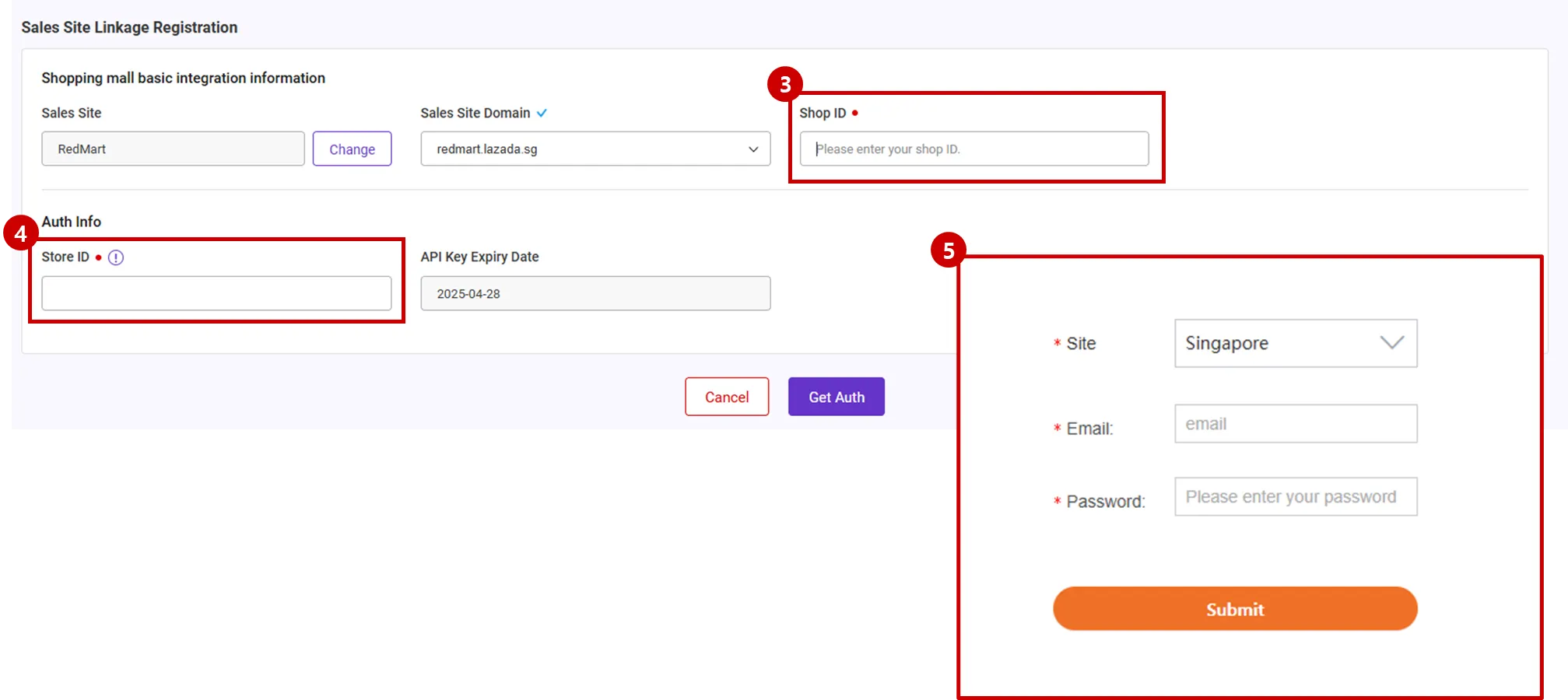 Shop ID : Input your RedMart Login ID and press the [Get Auth] button.