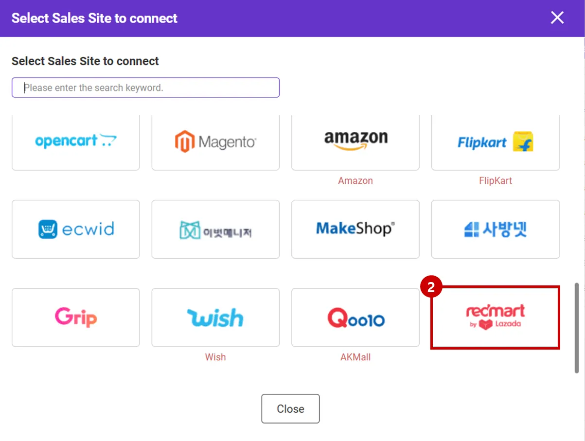 Store ID : Enter the Store ID issued by 1. Get Store ID from RedMart