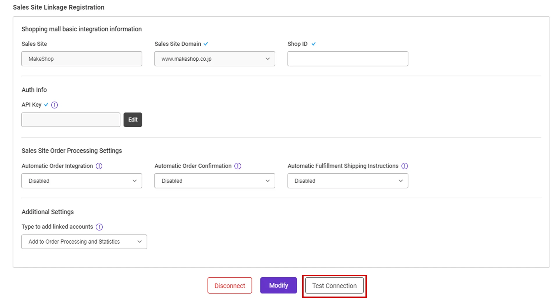 API KEY : Enter the API KEY issued by 1. Get API KEY from MakeShop.