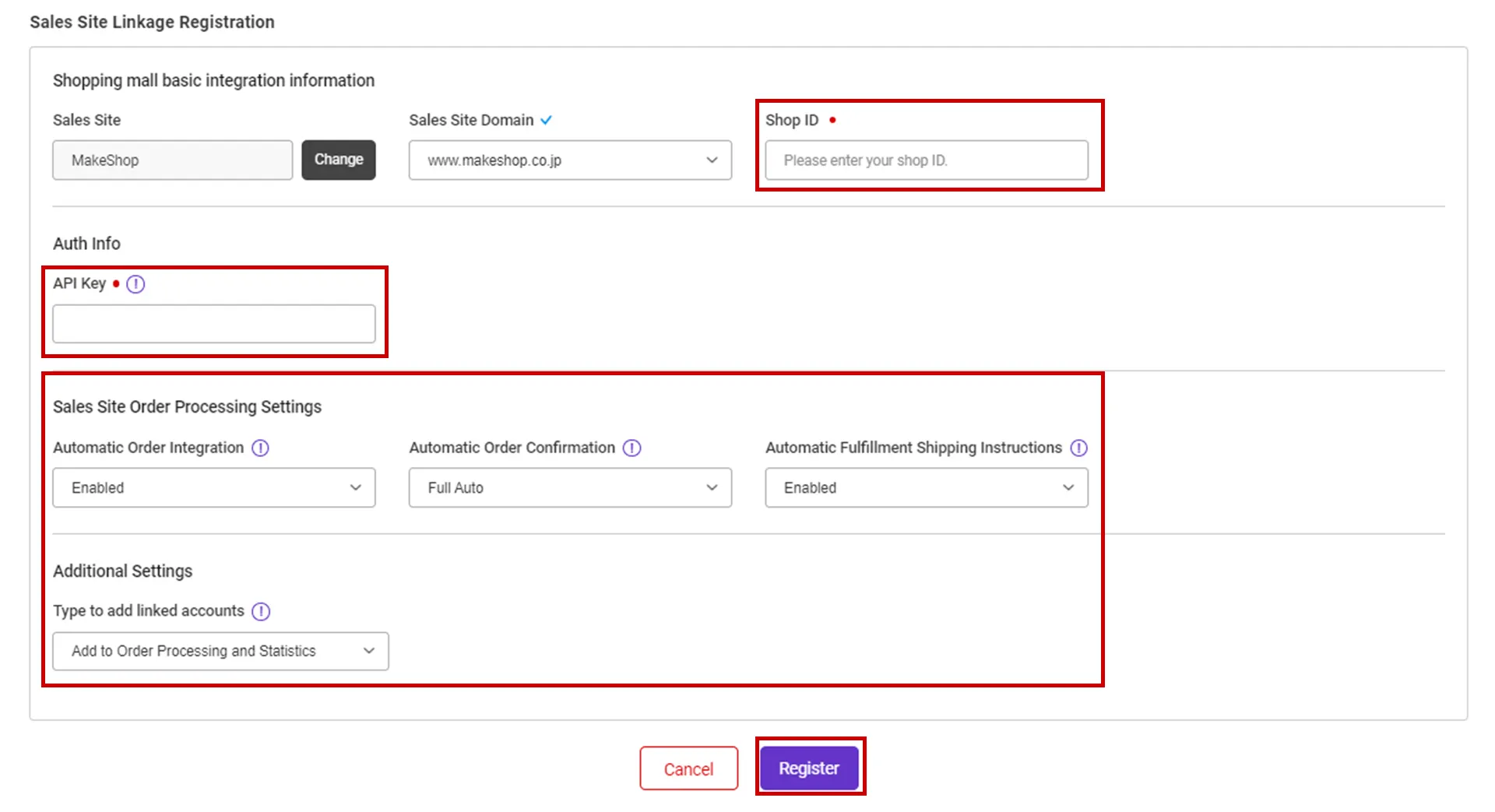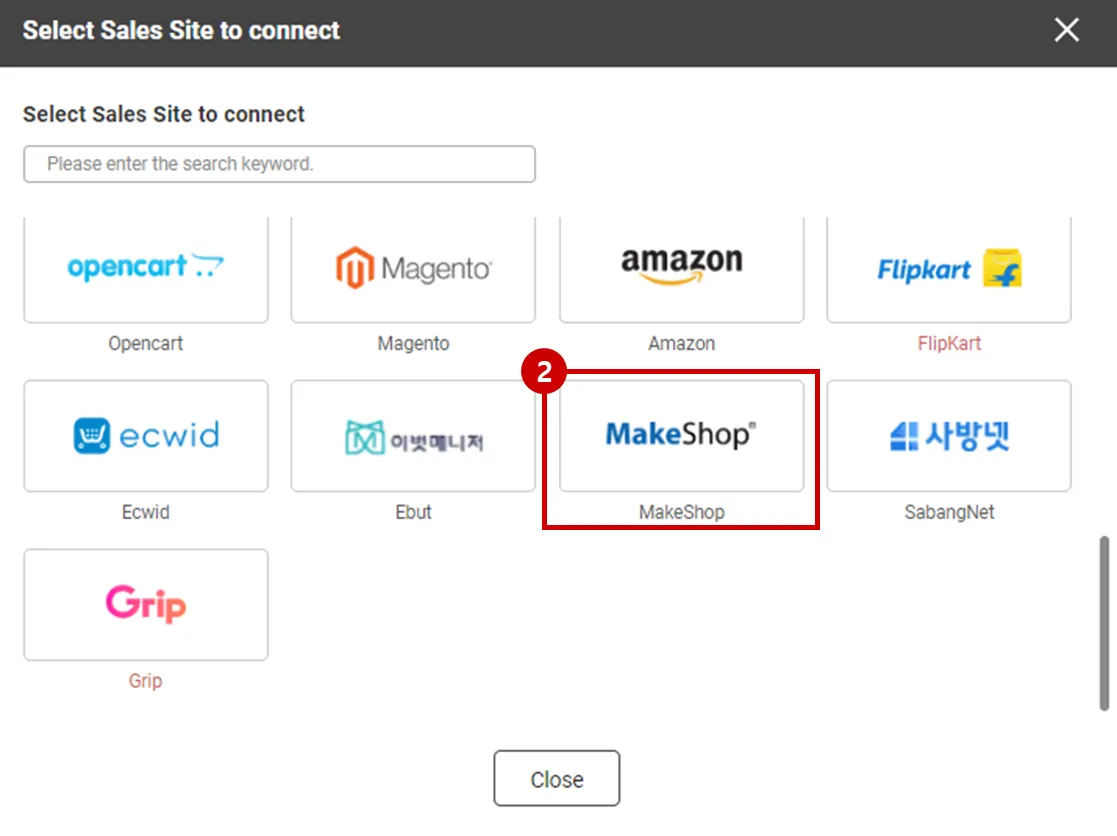 Select "MakeShop" Logo and please scroll to the "Sales Site Linkage Registration".