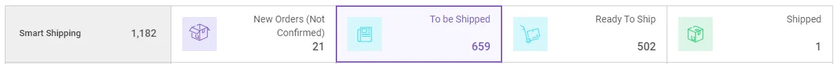 Shipped : When you have orders created through sales site API, and if these orders have been updated with the tracking no by Smartship API, then the orders will be counted under ‘Shipped’. If you don’t have orders created through Sales site API, then no orders will be counted under this status.
