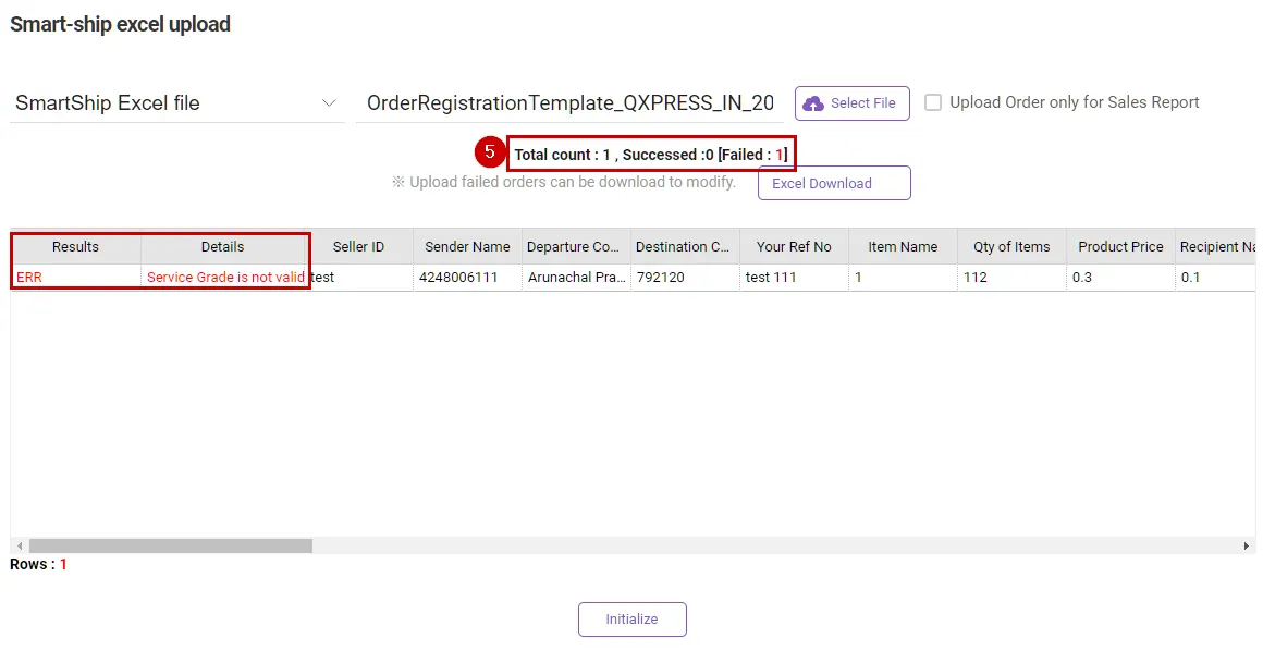 After order registration is complete, check the results, and if there are any failed orders, correct them and register again. Please check the “Details” column for the reason for the failure.