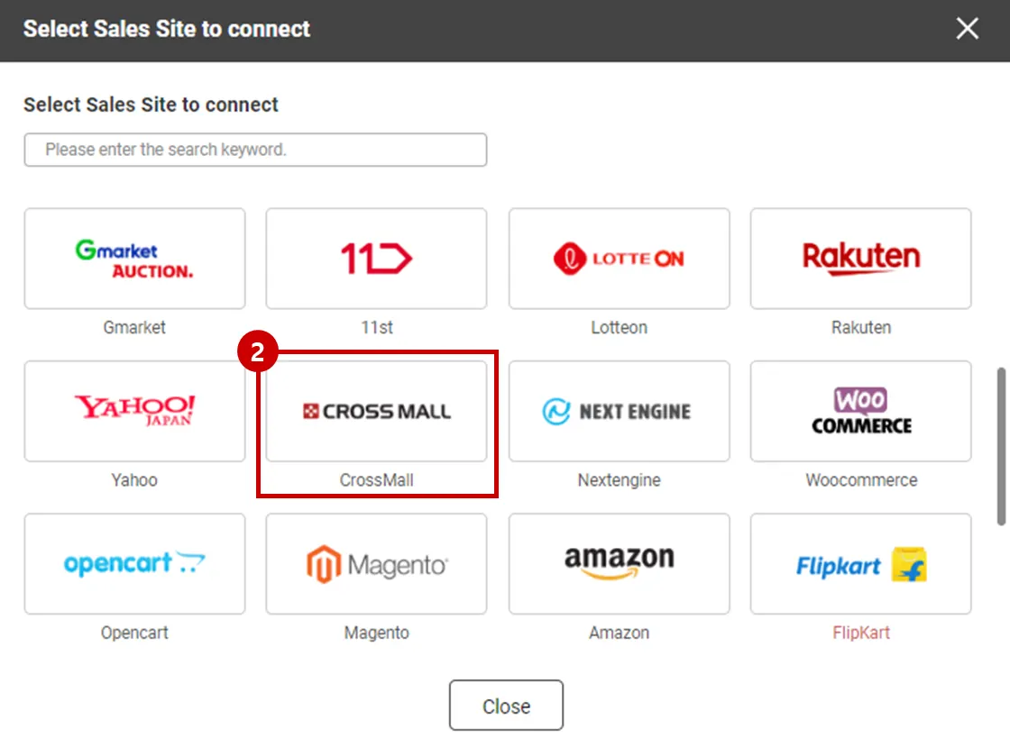 Select "Crossmall" Logo and please scroll to the "Sales Site Linkage Registration".