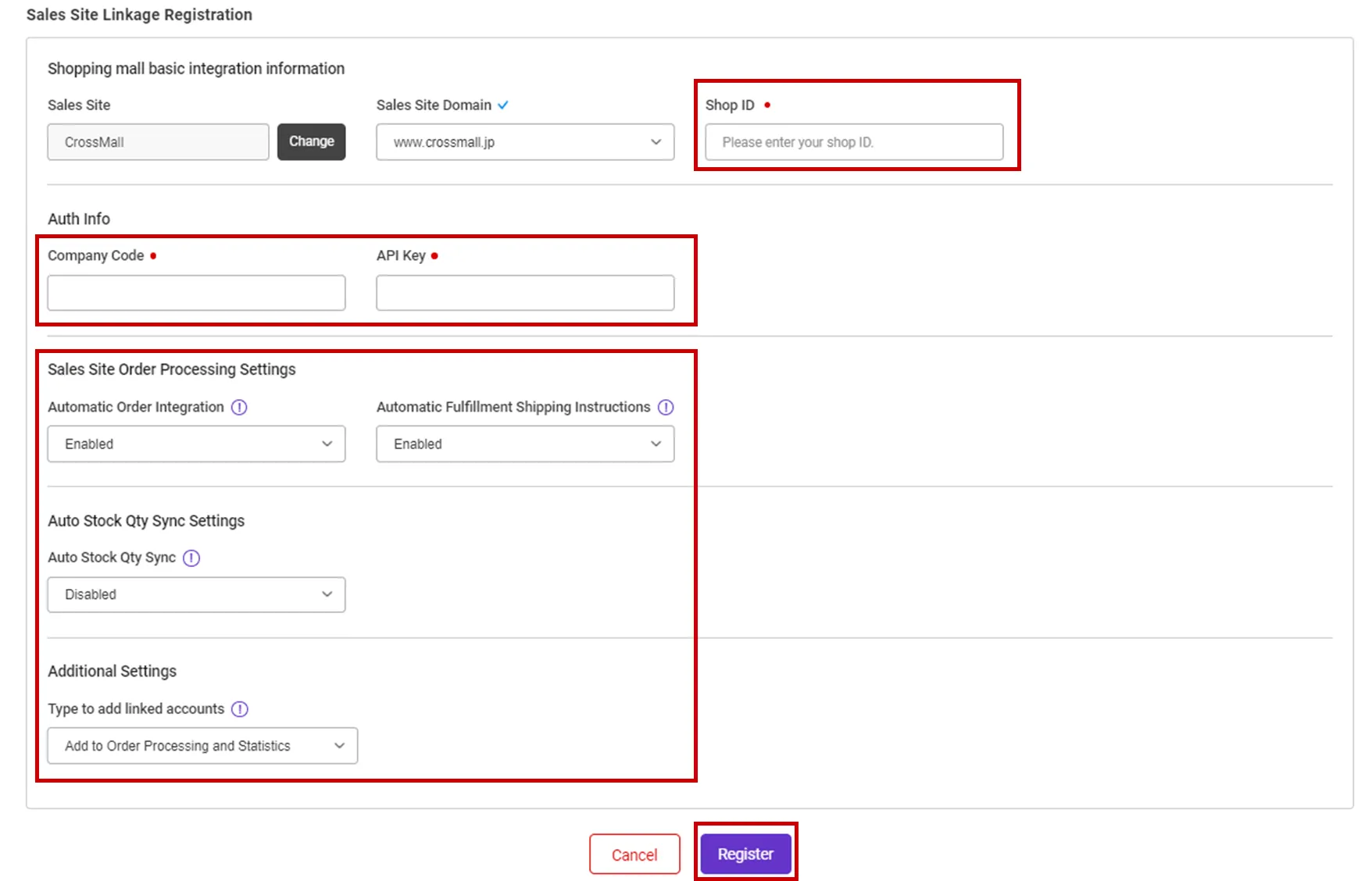 Shop ID : Enter Crossmall Shop ID.