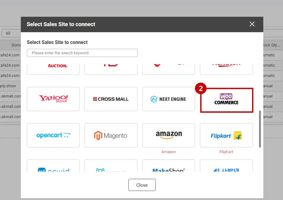 Select "Woocommerce" Logo and please scroll to the "Sales Site Linkage Registration".