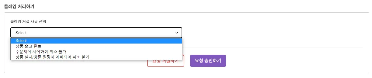 취소 요청을 거절하시려면, 사유 및 사유에 해당하는 추가 정보를 입력해주세요.