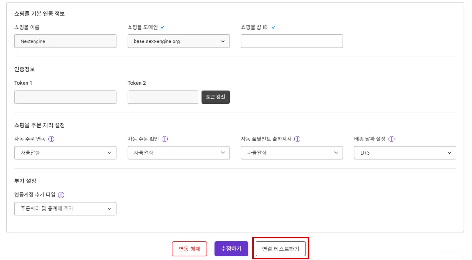 [연결 테스트하기] 버튼을 클릭하여 정상 연결 여부를 확인합니다.