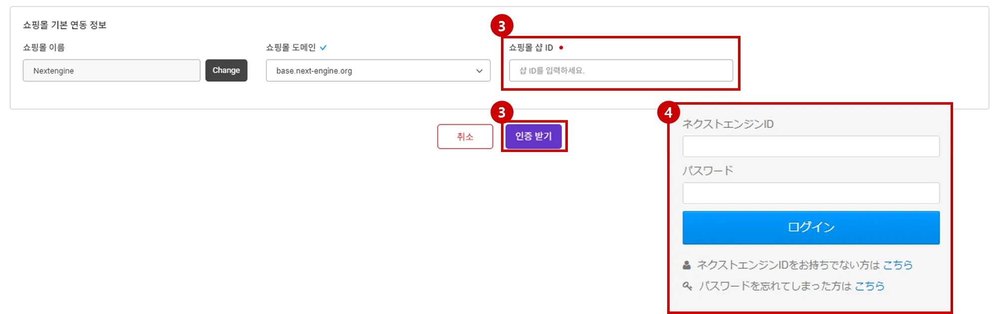 쇼핑몰 샵 ID: NextEngine ID를 기재합니다.