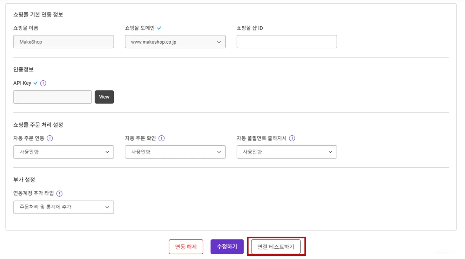 API Key : 1. MakeShop에서 API KEY 발급받기 에서 발급받은 API KEY를 입력합니다.
