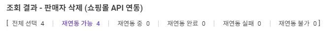 재연동 실패 : 판매사이트의 상태가 유효하지 않거나 서버 오류로 실패된 경우입니다.