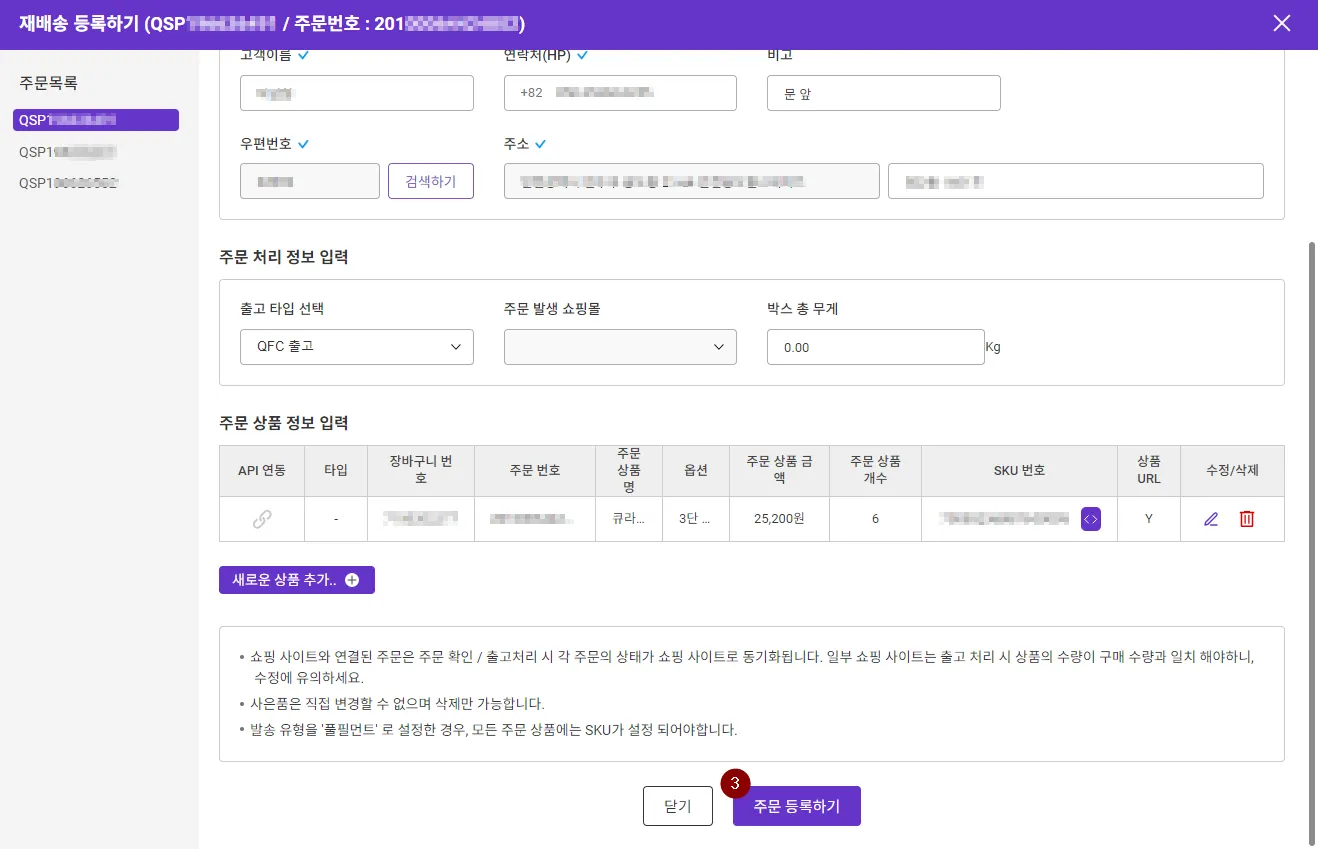 최종적으로 변경이 필요한 부분이 있다면 주문을 편집해주시고, 마지막으로 [주문 등록하기] 버튼을 눌러주세요.