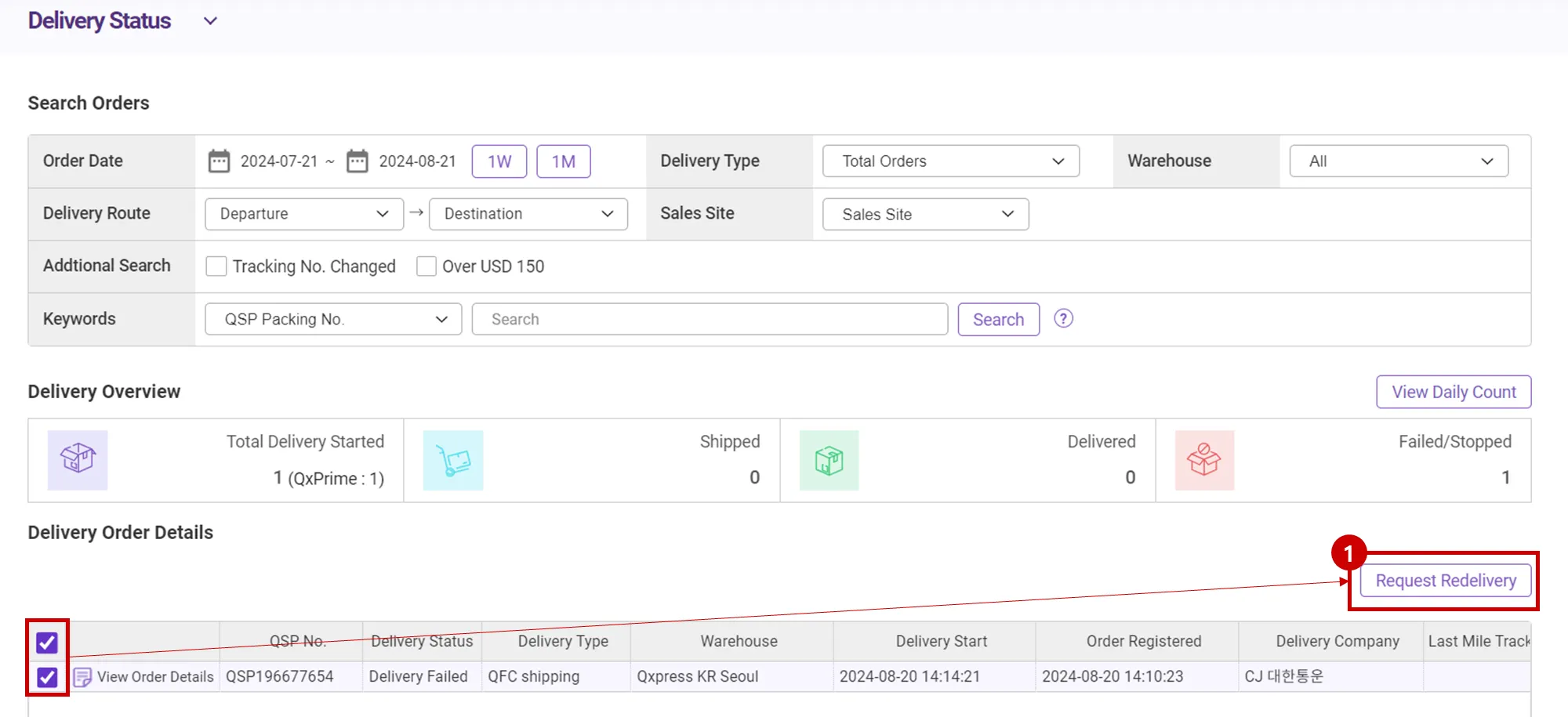 If the delivery has been completed, but you need to generate a re-delivery for damage or missing items during the delivery, you can easily apply for delivery using the Request Redelivery function.