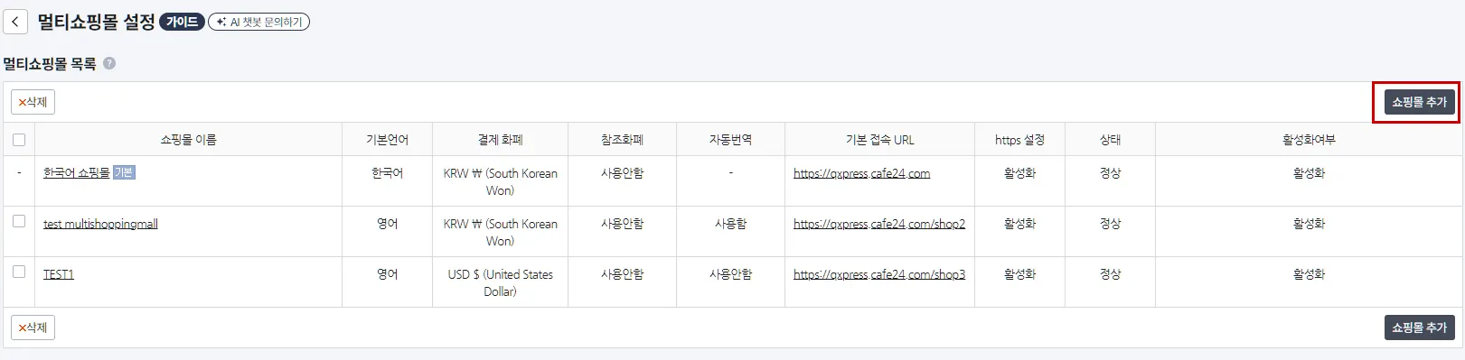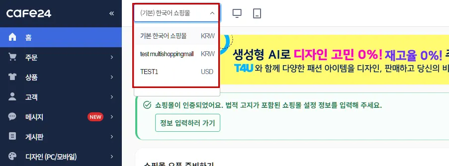 Cafe24 멀티쇼핑몰 생성하기