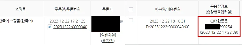 Cafe24 주문 연동 송장 번호 업데이트