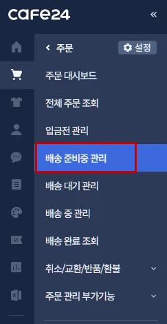 Cafe24에서 수집한 판매 주문 중, “배송 준비중” 상태의 주문을 가져옵니다.