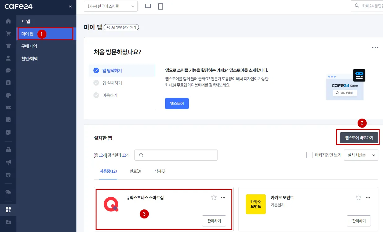 1. Cafe24 앱스토어에서 스마트십 설치하기