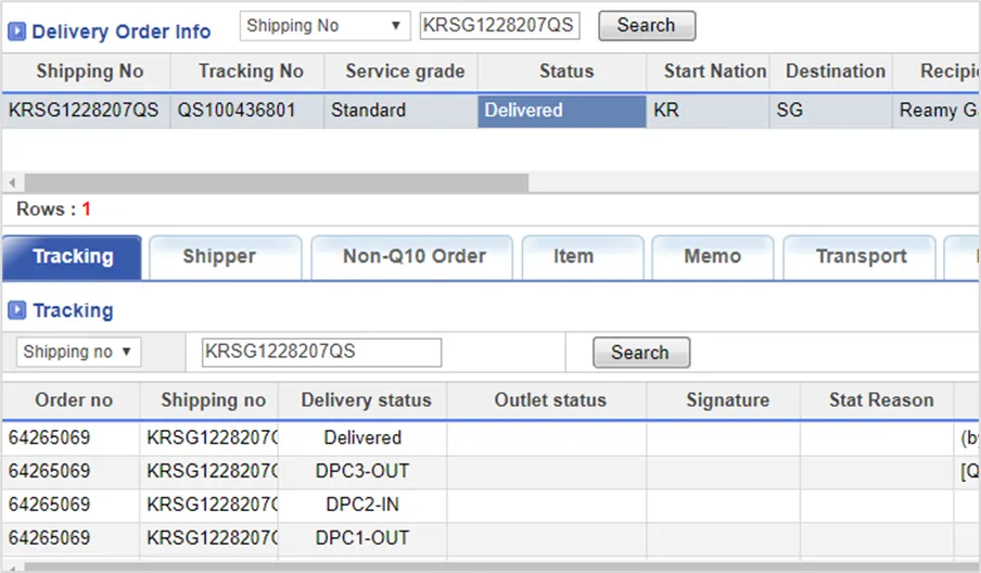 tracking no. (송장번호)를 통해 QLPS 에서 배송 현황을 조회 할 수 있으며 배송현황에 따라서 현지 배송사의 배송조회 페이지에서 상세 내역 조회가 가능합니다.