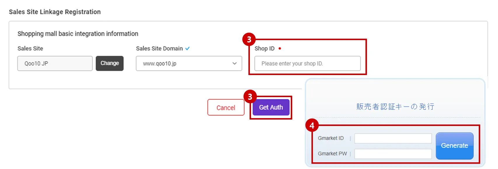Shop ID: Input your QSM JP Login ID and press the [Get Auth] button.